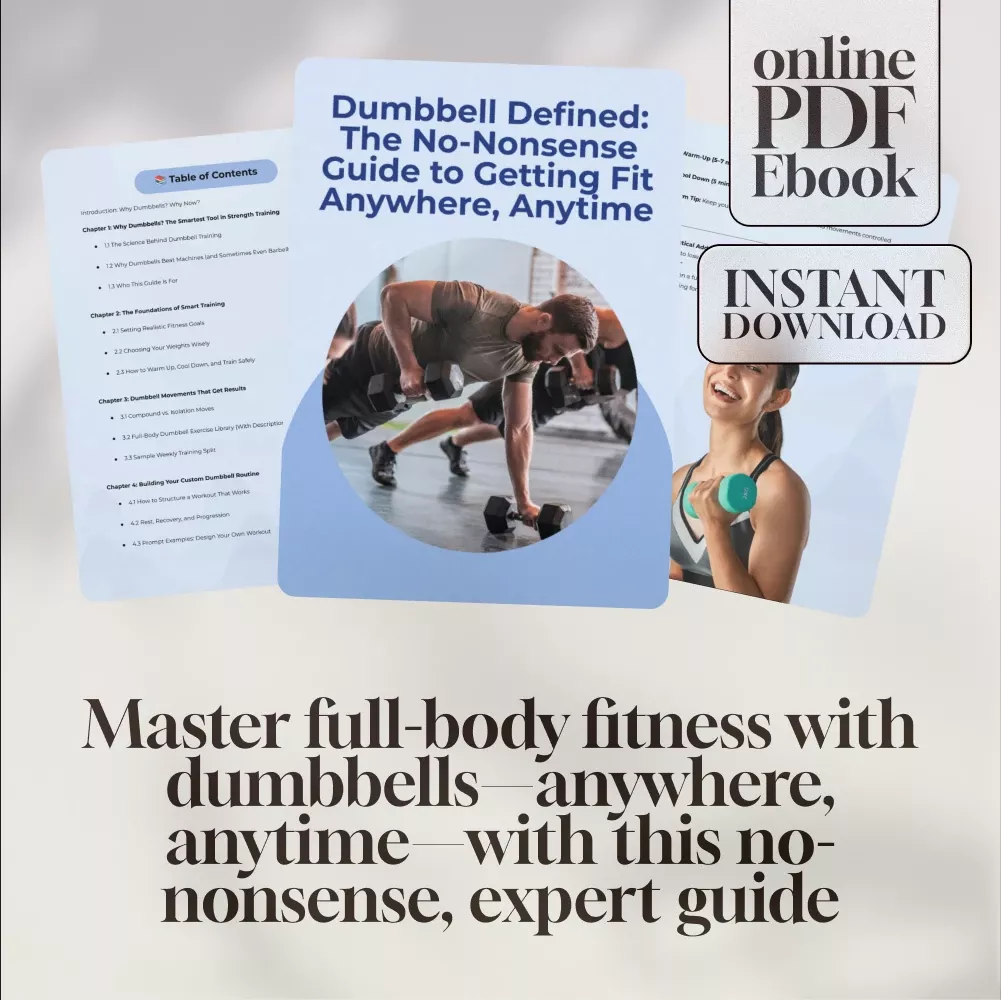 Download Dumbbell Defined: The No-Nonsense Guide to Getting Fit Anywhere, Anytime today and start building strength, confidence, and results wherever you are. Whether you’re just getting started or looking to refresh your routine, this guide will help you train smarter—not harder. Add it to your cart now and begin your dumbbell workout routine with purpose and power!