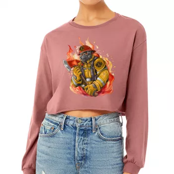 Firefighter Art Cropped Long Sleeve Sweatshirt – Cool Firefighter Women’s Crop Top – Firefighter Appreciation Long Sleeves Pullover