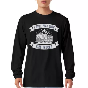 I Still Play With Fire Trucks Long Sleeve T-Shirt – Fire Truck T-Shirt – Funny Firefighter Basic Tee
