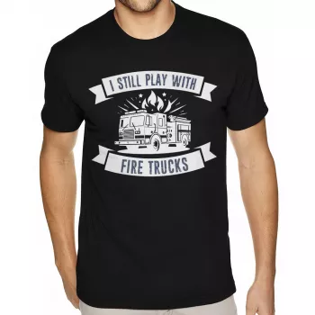 I Still Play With Fire Trucks T-Shirt – Fire Truck Heavy Cotton Tee – Funny Firefighter Shirt