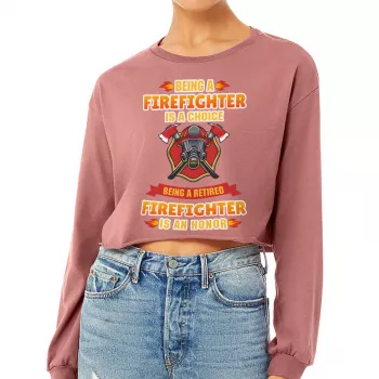 Retired Firefighter Cropped Long Sleeve Sweatshirt – Retirement Party Women’s Crop Top – Fire Chief Long Sleeves Pullover
