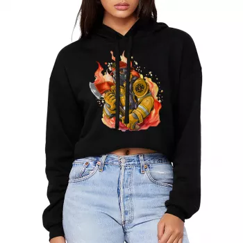 Firefighter Art Women’s Cropped Hoodie – Cool Firefighter Hooded Sweatshirt – Firefighter Appreciation Super Crop Top Hoodies