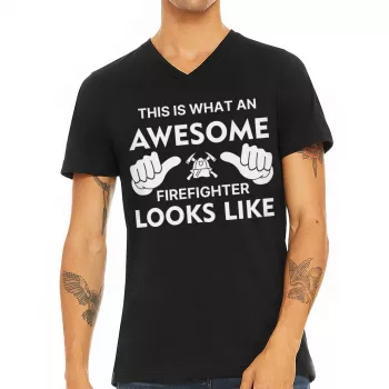 This Is What an Awesome Firefighter Looks Like V-Neck T-Shirt – Coworker Gift Basic T-Shirt – Firefighter Graduation Tee