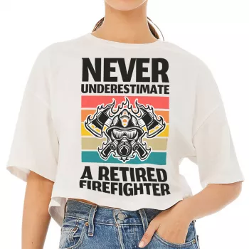Never Underestimate a Retired Firefighter Cropped T-Shirt – Firefighter Retirement Trendy Tee – Retirement Gift Women’s Basic T-Shirt