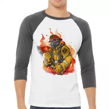 Firefighter Art Baseball T-Shirt – Cool Firefighter 3/4 Sleeve – Firefighter Appreciation Raglan Jersey Shirt