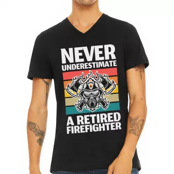 Never Underestimate a Retired Firefighter V-Neck T-Shirt – Retirement Gift Basic T-Shirt – Firefighter Retirement Tee