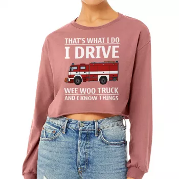 I Drive Wee Woo Truck Cropped Long Sleeve Sweatshirt – Firefighter Thats What I Do Women’s Crop Top – Gift for Firefighter Long Sleeves Pullover