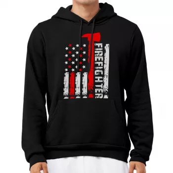 Firefighter Axe Flag Hoodie – USA Flag Hooded Sweatshirt – Firefighters Thin Red Line Unisex Hoodie