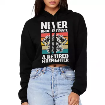 Never Underestimate a Retired Firefighter Women’s Cropped Hoodie – Retirement Gift Hooded Sweatshirt – Firefighter Retirement Super Crop Top Hoodies