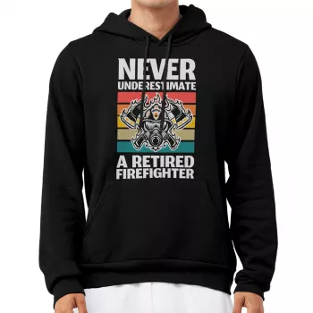 Never Underestimate a Retired Firefighter Hoodie – Retirement Gift Hooded Sweatshirt – Firefighter Retirement Unisex Hoodie