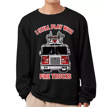 I Still Play With Fire Trucks Sweatshirt – Fire Truck Lover Crewneck Sweatshirt – Firefighter Gift Unisex Sweatshirt