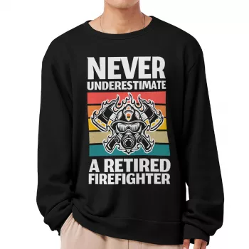 Never Underestimate a Retired Firefighter Sweatshirt – Retirement Gift Crewneck Sweatshirt – Firefighter Retirement Unisex Sweatshirt
