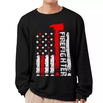 Firefighter Axe Flag Sweatshirt – Firefighters Thin Red Line Crewneck Sweatshirt – USA Flag Unisex Sweatshirt