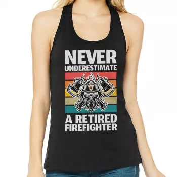 Never Underestimate a Retired Firefighter Racerback Tank – Retirement Gift Tank Top – Firefighter Retirement Tank