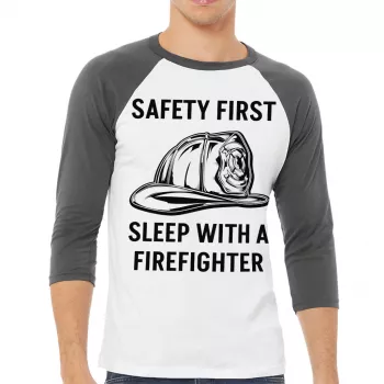Safety First Sleep With A Firefighter Baseball T-Shirt – Firefighter Funny 3/4 Sleeve – Funny Fireman Raglan Jersey Shirt
