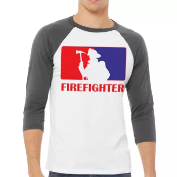 Cool Firefighter Logo Baseball T-Shirt – Firefighter Design 3/4 Sleeve – Retro Firefighter Raglan Jersey Shirt